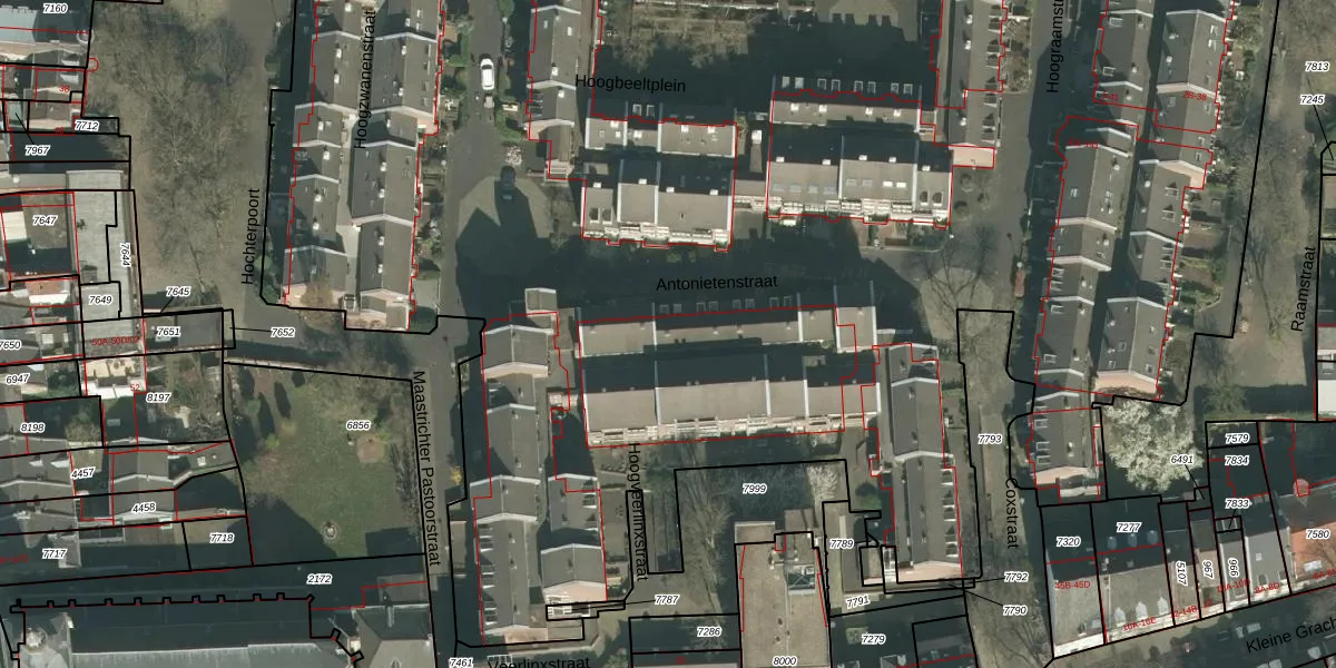 Antonietenstraat 15 is gelegen op kadastraal perceel MTT00A7206. Deze kadastrale aanduiding is uniek en wordt gebruikt door het Kadaster om eigendomsrechten en andere zakelijke rechten vast te leggen. Het perceel maakt onderdeel uit van de kadastrale gemeente Maastricht.