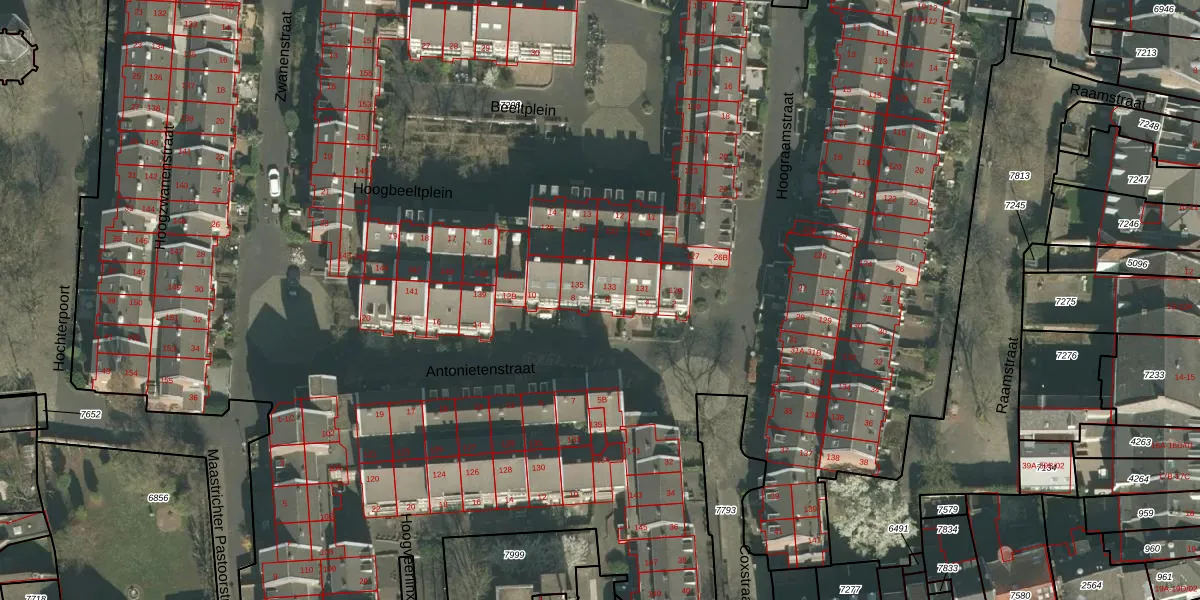 Antonietenstraat 6 is gelegen op kadastraal perceel MTT00A7206. Deze kadastrale aanduiding is uniek en wordt gebruikt door het Kadaster om eigendomsrechten en andere zakelijke rechten vast te leggen. Het perceel maakt onderdeel uit van de kadastrale gemeente Maastricht.