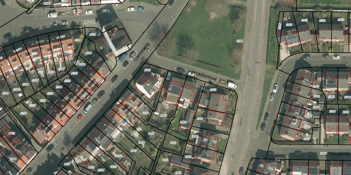 Het perceel waarop Arcadiastraat 5 staat heeft een oppervlakte van 380 m². Dit is een groot perceel. De perceeloppervlakte wordt geregistreerd door het Kadaster. Gedetailleerde informatie over de maten van dit perceel kunt u vinden in het rapport Kadastrale kaart met maatvoering van Arcadiastraat 5.