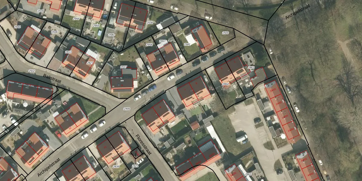 Het perceel waarop Archipelstraat 7 staat heeft een oppervlakte van 6935 m². Dit is een zeer groot perceel. De perceeloppervlakte wordt geregistreerd door het Kadaster. Gedetailleerde informatie over de maten van dit perceel kunt u vinden in het rapport Kadastrale kaart met maatvoering van Archipelstraat 7.