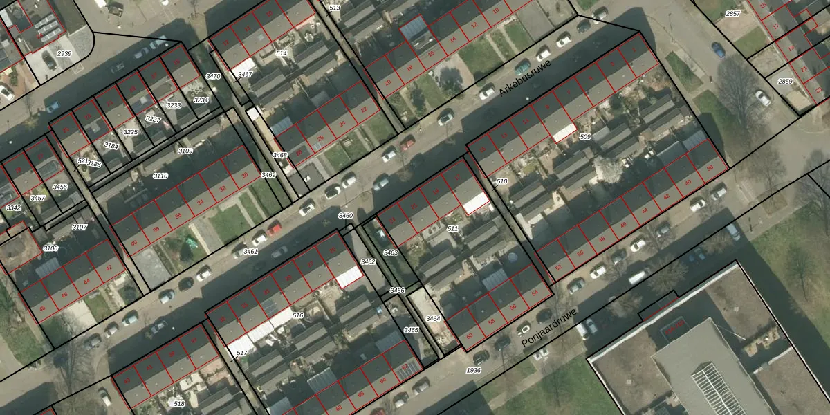 Het perceel waarop Arkebusruwe 21 staat heeft een oppervlakte van 1005 m². Dit is een zeer groot perceel. De perceeloppervlakte wordt geregistreerd door het Kadaster. Gedetailleerde informatie over de maten van dit perceel kunt u vinden in het rapport Kadastrale kaart met maatvoering van Arkebusruwe 21.