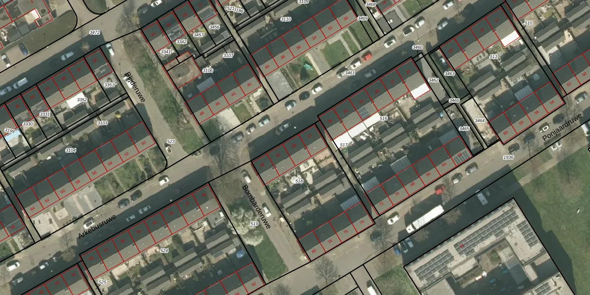 Het perceel waarop Arkebusruwe 39 staat heeft een oppervlakte van 990 m². Dit is een groot perceel. De perceeloppervlakte wordt geregistreerd door het Kadaster. Gedetailleerde informatie over de maten van dit perceel kunt u vinden in het rapport Kadastrale kaart met maatvoering van Arkebusruwe 39.