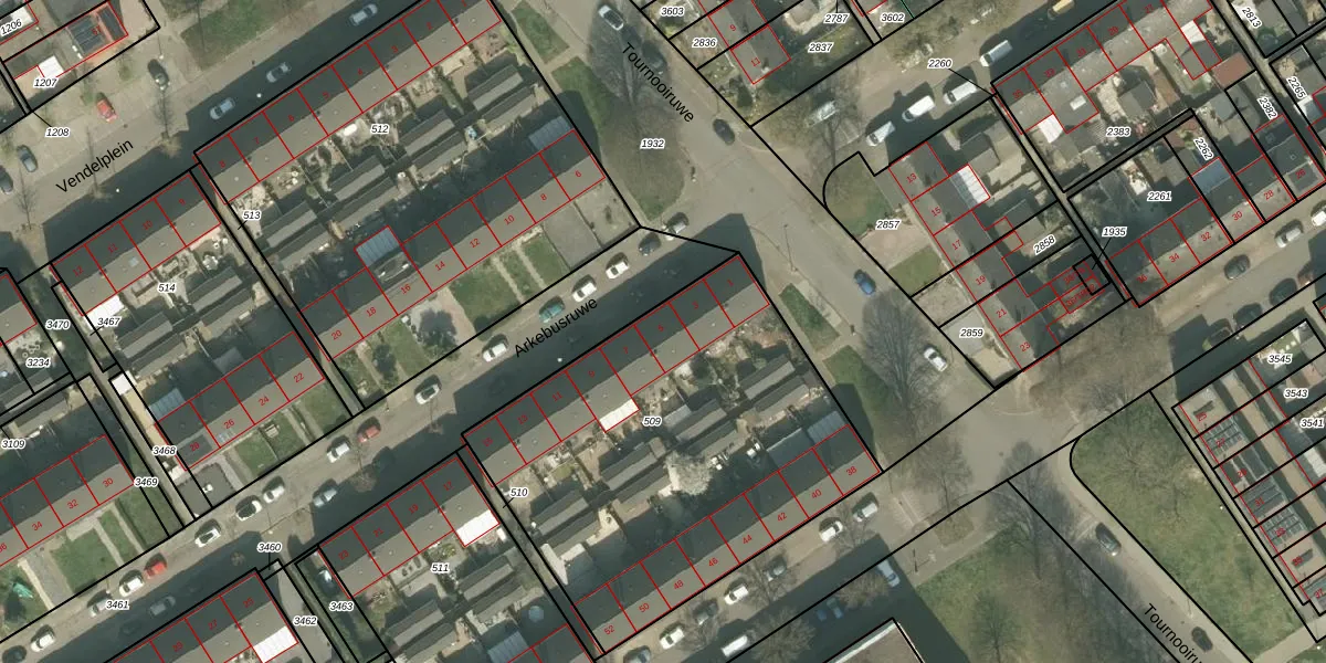 Het perceel waarop Arkebusruwe 5 staat heeft een oppervlakte van 1995 m². Dit is een zeer groot perceel. De perceeloppervlakte wordt geregistreerd door het Kadaster. Gedetailleerde informatie over de maten van dit perceel kunt u vinden in het rapport Kadastrale kaart met maatvoering van Arkebusruwe 5.