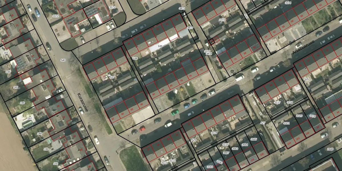 Het perceel waarop Arkebusruwe 80 staat heeft een oppervlakte van 1775 m². Dit is een zeer groot perceel. De perceeloppervlakte wordt geregistreerd door het Kadaster. Gedetailleerde informatie over de maten van dit perceel kunt u vinden in het rapport Kadastrale kaart met maatvoering van Arkebusruwe 80.