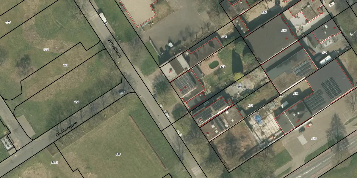 Het perceel waarop Arrestruwe 47 staat heeft een oppervlakte van 960 m². Dit is een groot perceel. De perceeloppervlakte wordt geregistreerd door het Kadaster. Gedetailleerde informatie over de maten van dit perceel kunt u vinden in het rapport Kadastrale kaart met maatvoering van Arrestruwe 47.
