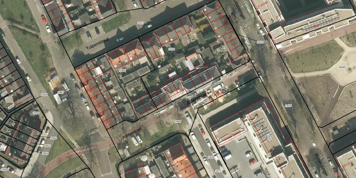 Het perceel waarop Asterstraat 12 staat heeft een oppervlakte van 2244 m². Dit is een zeer groot perceel. De perceeloppervlakte wordt geregistreerd door het Kadaster. Gedetailleerde informatie over de maten van dit perceel kunt u vinden in het rapport Kadastrale kaart met maatvoering van Asterstraat 12.