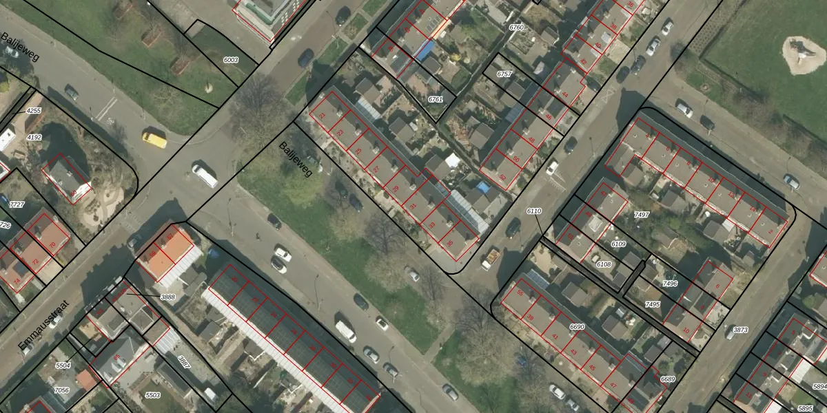 Het perceel waarop Balijeweg 31 staat heeft een oppervlakte van 4630 m². Dit is een zeer groot perceel. De perceeloppervlakte wordt geregistreerd door het Kadaster. Gedetailleerde informatie over de maten van dit perceel kunt u vinden in het rapport Kadastrale kaart met maatvoering van Balijeweg 31.