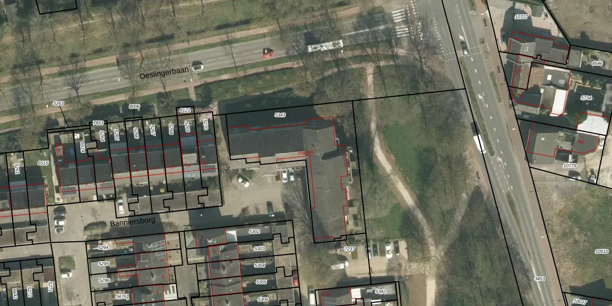 Banniersborg 25-B is gelegen op kadastraal perceel MTT00P5343. Deze kadastrale aanduiding is uniek en wordt gebruikt door het Kadaster om eigendomsrechten en andere zakelijke rechten vast te leggen. Het perceel maakt onderdeel uit van de kadastrale gemeente Maastricht.