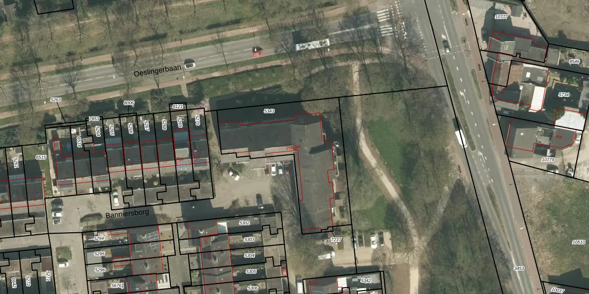 Banniersborg 39-B is gelegen op kadastraal perceel MTT00P5343. Deze kadastrale aanduiding is uniek en wordt gebruikt door het Kadaster om eigendomsrechten en andere zakelijke rechten vast te leggen. Het perceel maakt onderdeel uit van de kadastrale gemeente Maastricht.