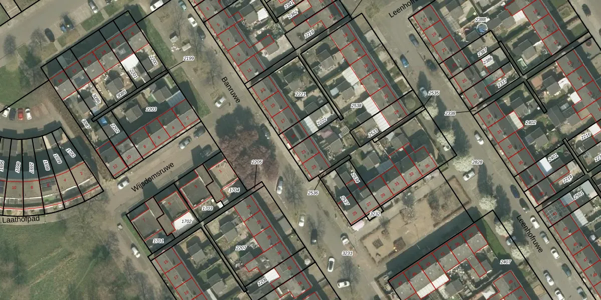 Het perceel waarop Banruwe 21 staat heeft een oppervlakte van 1587 m². Dit is een zeer groot perceel. De perceeloppervlakte wordt geregistreerd door het Kadaster. Gedetailleerde informatie over de maten van dit perceel kunt u vinden in het rapport Kadastrale kaart met maatvoering van Banruwe 21.
