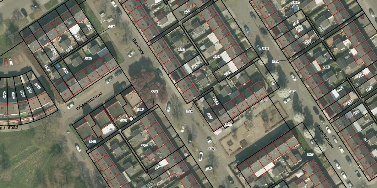 Het perceel waarop Banruwe 23 staat heeft een oppervlakte van 1587 m². Dit is een zeer groot perceel. De perceeloppervlakte wordt geregistreerd door het Kadaster. Gedetailleerde informatie over de maten van dit perceel kunt u vinden in het rapport Kadastrale kaart met maatvoering van Banruwe 23.