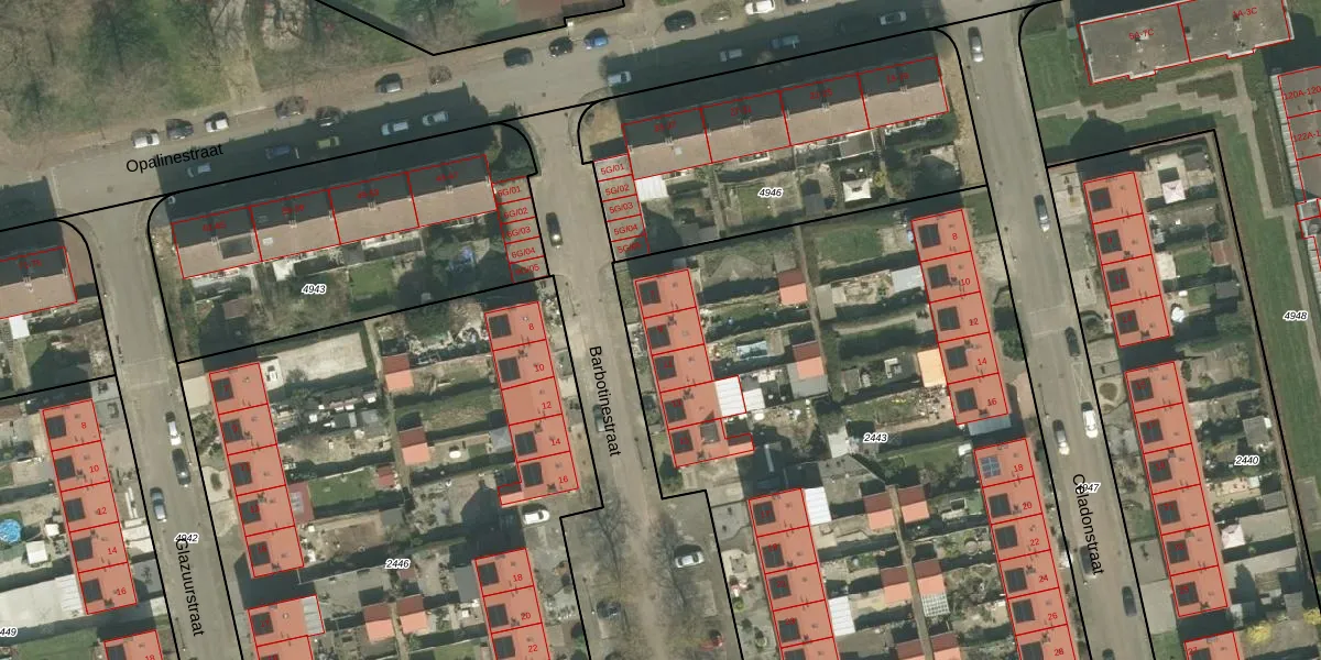Het perceel waarop Barbotinestraat 9 staat heeft een oppervlakte van 4440 m². Dit is een zeer groot perceel. De perceeloppervlakte wordt geregistreerd door het Kadaster. Gedetailleerde informatie over de maten van dit perceel kunt u vinden in het rapport Kadastrale kaart met maatvoering van Barbotinestraat 9.