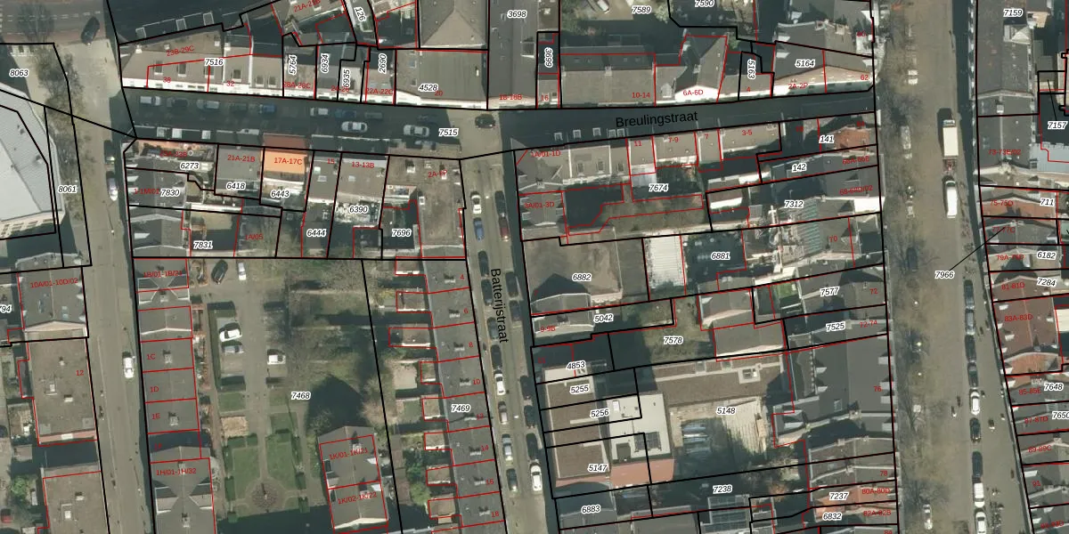 Batterijstraat 5 is gelegen op kadastraal perceel MTT00A6882. Deze kadastrale aanduiding is uniek en wordt gebruikt door het Kadaster om eigendomsrechten en andere zakelijke rechten vast te leggen. Het perceel maakt onderdeel uit van de kadastrale gemeente Maastricht.