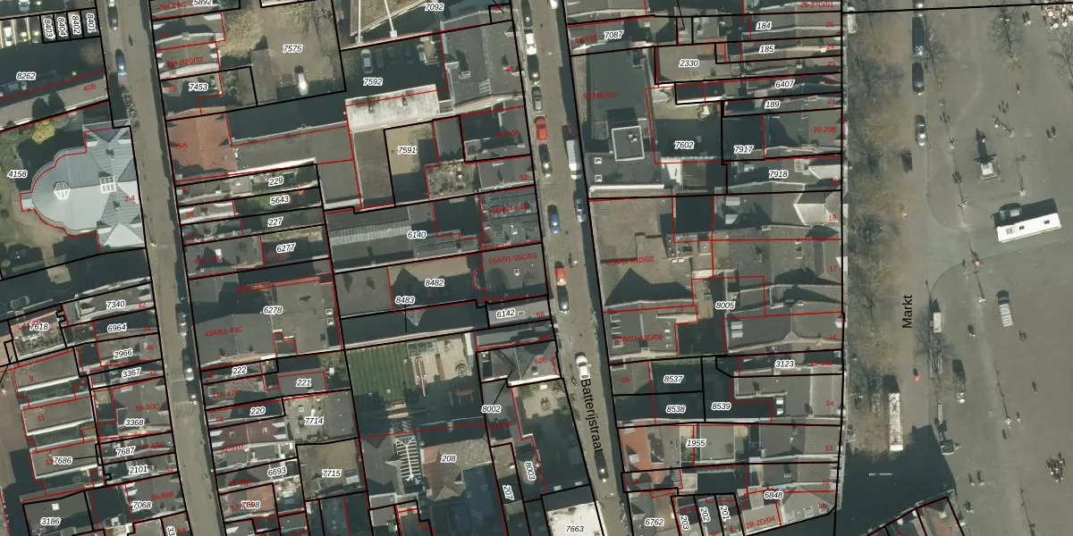 Batterijstraat 56-A-01 is gelegen op kadastraal perceel MTT00A8482. Deze kadastrale aanduiding is uniek en wordt gebruikt door het Kadaster om eigendomsrechten en andere zakelijke rechten vast te leggen. Het perceel maakt onderdeel uit van de kadastrale gemeente Maastricht.