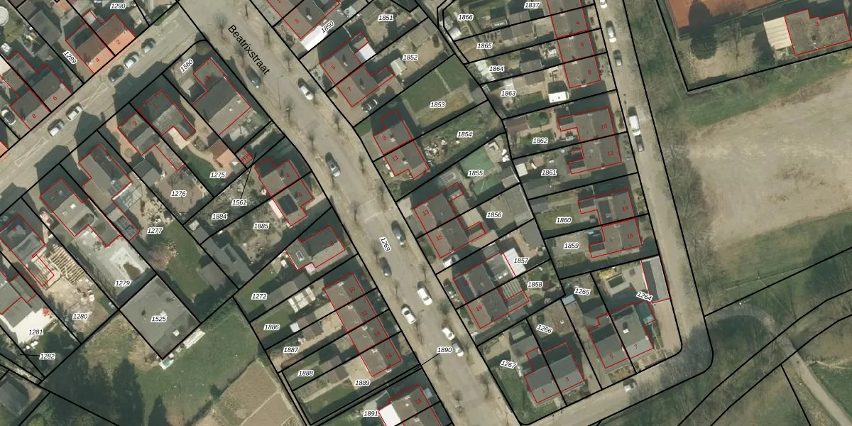 Beatrixstraat 13 is gelegen op kadastraal perceel BHR01B1855. Deze kadastrale aanduiding is uniek en wordt gebruikt door het Kadaster om eigendomsrechten en andere zakelijke rechten vast te leggen. Het perceel maakt onderdeel uit van de kadastrale gemeente Borgharen.