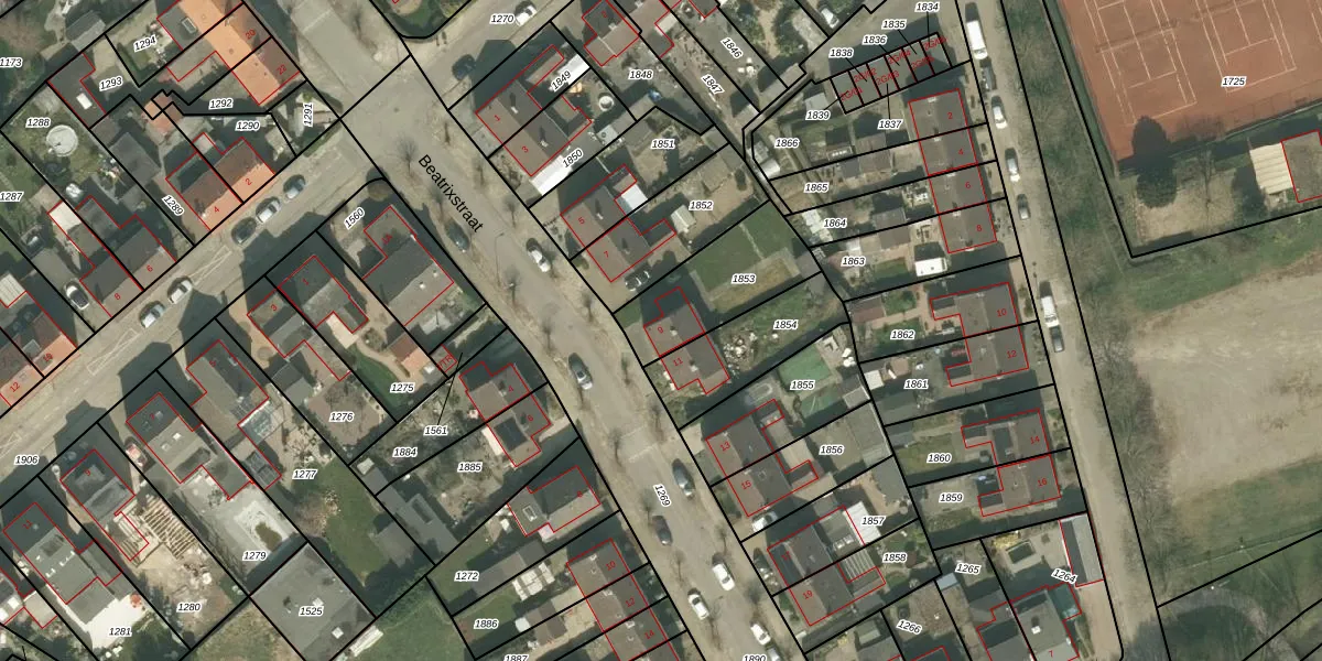 Beatrixstraat 9 is gelegen op kadastraal perceel BHR01B1853. Deze kadastrale aanduiding is uniek en wordt gebruikt door het Kadaster om eigendomsrechten en andere zakelijke rechten vast te leggen. Het perceel maakt onderdeel uit van de kadastrale gemeente Borgharen.