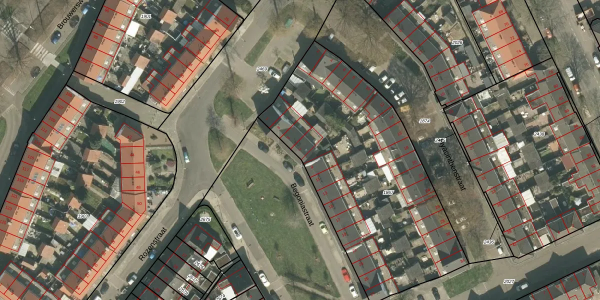 Het perceel waarop Begoniastraat 7 staat heeft een oppervlakte van 2890 m². Dit is een zeer groot perceel. De perceeloppervlakte wordt geregistreerd door het Kadaster. Gedetailleerde informatie over de maten van dit perceel kunt u vinden in het rapport Kadastrale kaart met maatvoering van Begoniastraat 7.