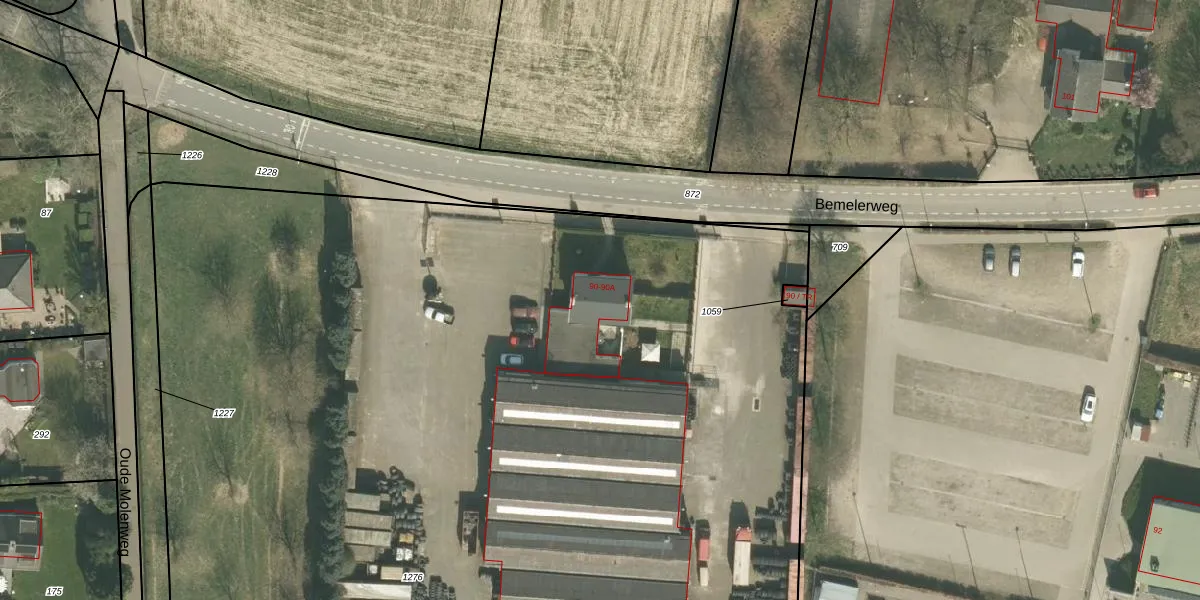 Het perceel waarop Bemelerweg 90 staat heeft een oppervlakte van 1,1 ha. Dit is een zeer groot perceel. De perceeloppervlakte wordt geregistreerd door het Kadaster. Gedetailleerde informatie over de maten van dit perceel kunt u vinden in het rapport Kadastrale kaart met maatvoering van Bemelerweg 90.