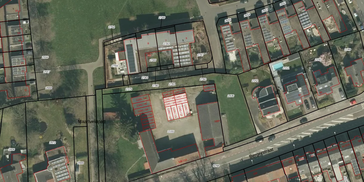 Bergerstraat 110-G-16 is gelegen op kadastraal perceel ABY00C2155. Deze kadastrale aanduiding is uniek en wordt gebruikt door het Kadaster om eigendomsrechten en andere zakelijke rechten vast te leggen. Het perceel maakt onderdeel uit van de kadastrale gemeente Amby.