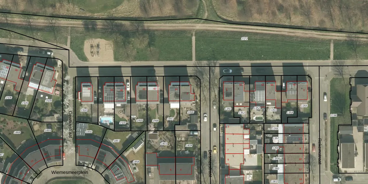 Het perceel waarop Besmerstraat 2 staat heeft een oppervlakte van 338 m². Dit is een groot perceel. De perceeloppervlakte wordt geregistreerd door het Kadaster. Gedetailleerde informatie over de maten van dit perceel kunt u vinden in het rapport Kadastrale kaart met maatvoering van Besmerstraat 2.