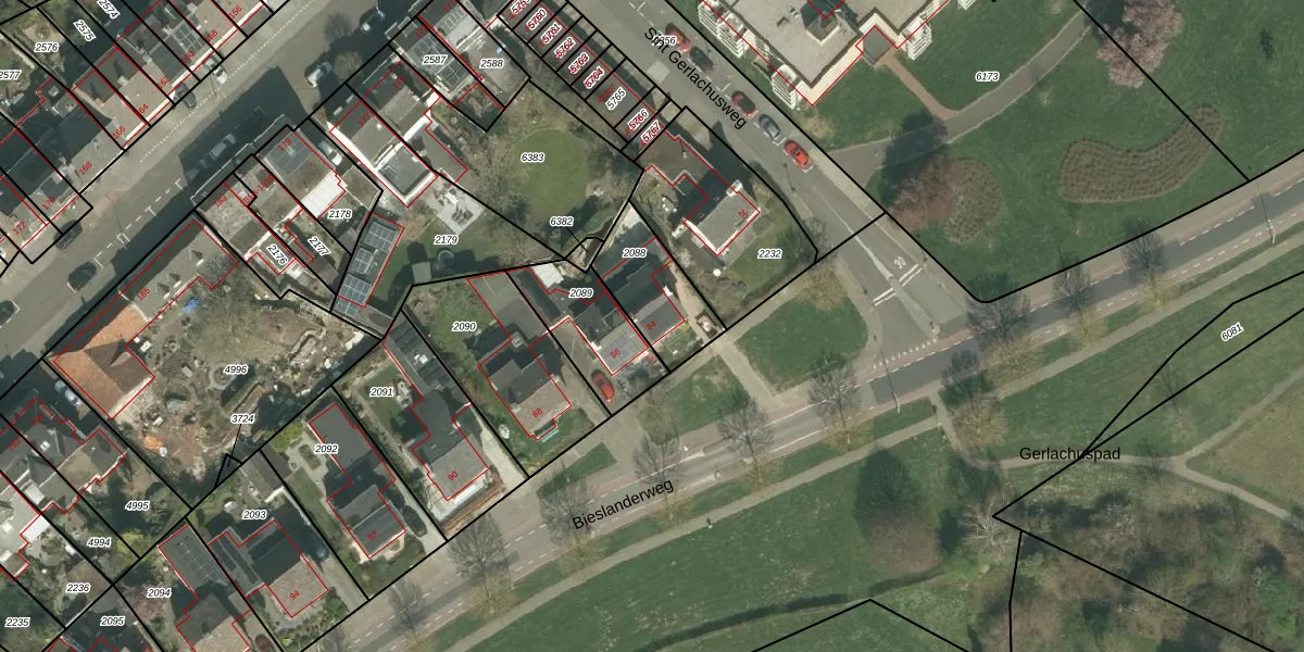 Bieslanderweg 84 is gelegen op kadastraal perceel MTT00O2088. Deze kadastrale aanduiding is uniek en wordt gebruikt door het Kadaster om eigendomsrechten en andere zakelijke rechten vast te leggen. Het perceel maakt onderdeel uit van de kadastrale gemeente Maastricht.