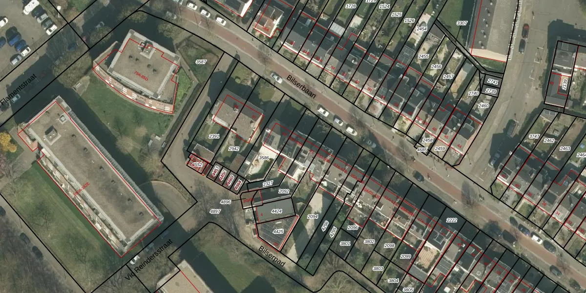 Het perceel waarop Bilserbaan 63-C staat heeft een oppervlakte van 177 m². Dit is een middelgroot perceel. De perceeloppervlakte wordt geregistreerd door het Kadaster. Gedetailleerde informatie over de maten van dit perceel kunt u vinden in het rapport Kadastrale kaart met maatvoering van Bilserbaan 63-C.