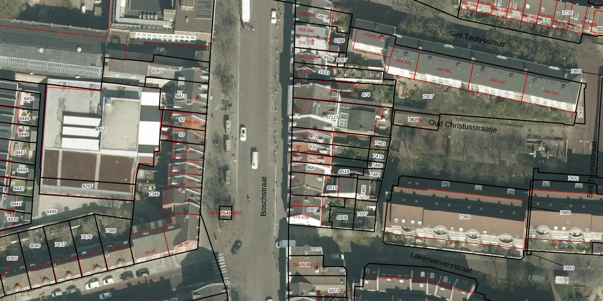 Het perceel waarop Boschstraat 49 staat heeft een oppervlakte van 100 m². Dit is een middelgroot perceel. De perceeloppervlakte wordt geregistreerd door het Kadaster. Gedetailleerde informatie over de maten van dit perceel kunt u vinden in het rapport Kadastrale kaart met maatvoering van Boschstraat 49.