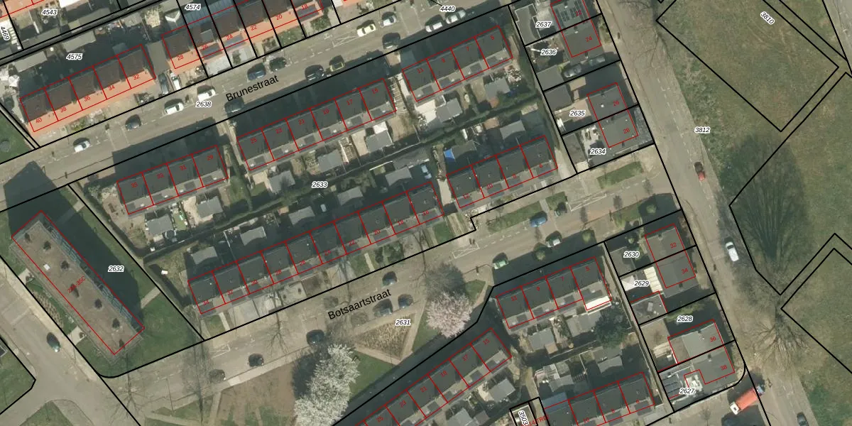Het perceel waarop Botsaartstraat 16 staat heeft een oppervlakte van 4680 m². Dit is een zeer groot perceel. De perceeloppervlakte wordt geregistreerd door het Kadaster. Gedetailleerde informatie over de maten van dit perceel kunt u vinden in het rapport Kadastrale kaart met maatvoering van Botsaartstraat 16.