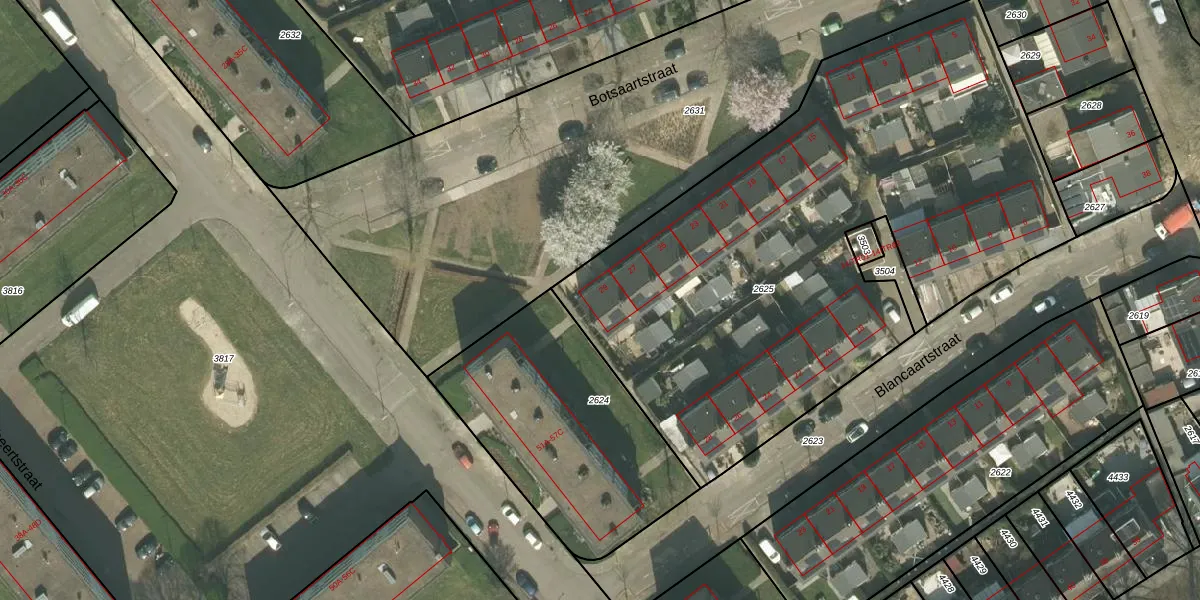 Het perceel waarop Botsaartstraat 29 staat heeft een oppervlakte van 3360 m². Dit is een zeer groot perceel. De perceeloppervlakte wordt geregistreerd door het Kadaster. Gedetailleerde informatie over de maten van dit perceel kunt u vinden in het rapport Kadastrale kaart met maatvoering van Botsaartstraat 29.