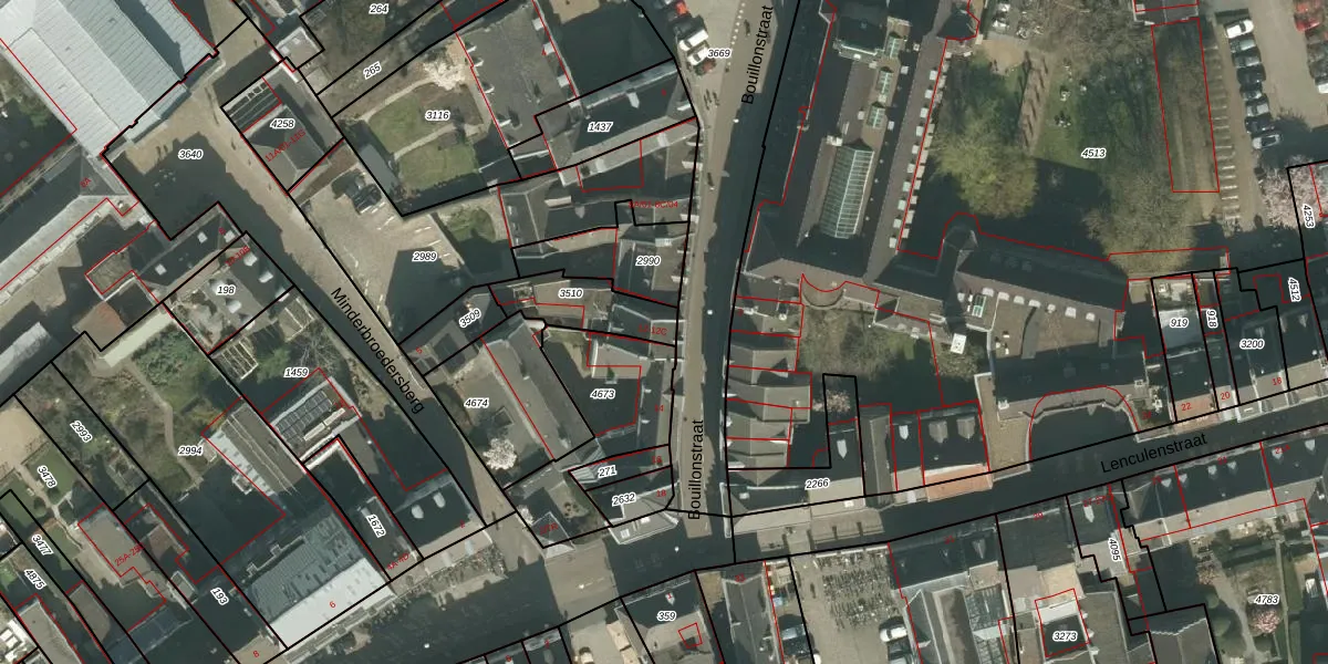Bouillonstraat 12 is gelegen op kadastraal perceel MTT00B3510. Deze kadastrale aanduiding is uniek en wordt gebruikt door het Kadaster om eigendomsrechten en andere zakelijke rechten vast te leggen. Het perceel maakt onderdeel uit van de kadastrale gemeente Maastricht.