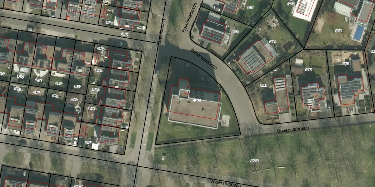 Het perceel waarop Bovenstebosch 3-A staat heeft een oppervlakte van 1408 m². Dit is een zeer groot perceel. De perceeloppervlakte wordt geregistreerd door het Kadaster. Gedetailleerde informatie over de maten van dit perceel kunt u vinden in het rapport Kadastrale kaart met maatvoering van Bovenstebosch 3-A.