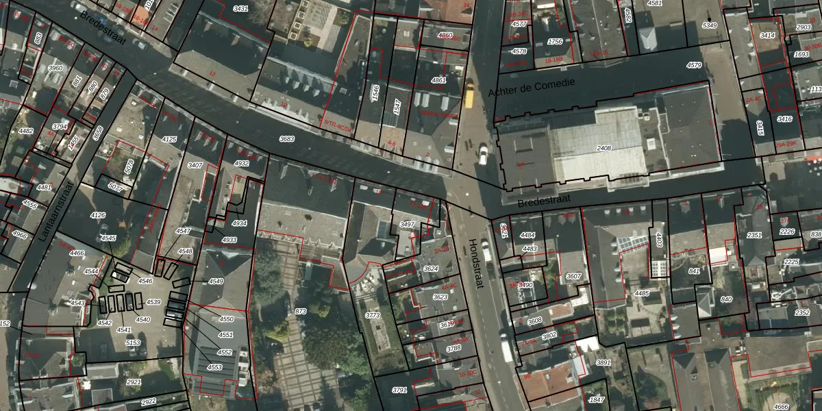 Bredestraat 13 is gelegen op kadastraal perceel MTT00B3497. Deze kadastrale aanduiding is uniek en wordt gebruikt door het Kadaster om eigendomsrechten en andere zakelijke rechten vast te leggen. Het perceel maakt onderdeel uit van de kadastrale gemeente Maastricht.