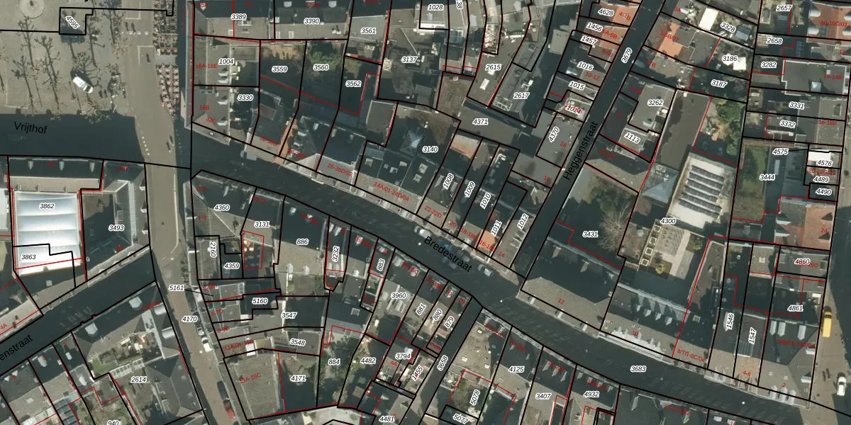 Bredestraat 22-B is gelegen op kadastraal perceel MTT00B1008. Deze kadastrale aanduiding is uniek en wordt gebruikt door het Kadaster om eigendomsrechten en andere zakelijke rechten vast te leggen. Het perceel maakt onderdeel uit van de kadastrale gemeente Maastricht.