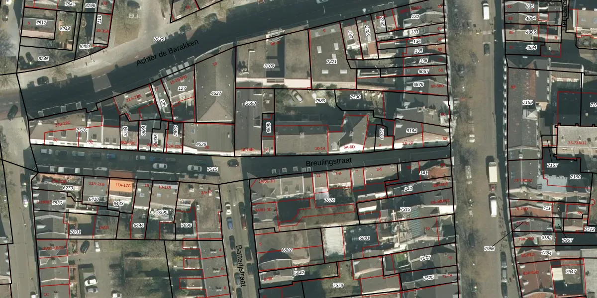 Het perceel waarop Breulingstraat 12 staat heeft een oppervlakte van 654 m². Dit is een groot perceel. De perceeloppervlakte wordt geregistreerd door het Kadaster. Gedetailleerde informatie over de maten van dit perceel kunt u vinden in het rapport Kadastrale kaart met maatvoering van Breulingstraat 12.