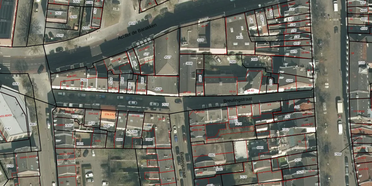 Breulingstraat 18-B is gelegen op kadastraal perceel MTT00A3698. Deze kadastrale aanduiding is uniek en wordt gebruikt door het Kadaster om eigendomsrechten en andere zakelijke rechten vast te leggen. Het perceel maakt onderdeel uit van de kadastrale gemeente Maastricht.