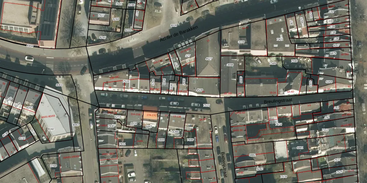 Het perceel waarop Breulingstraat 22-A staat heeft een oppervlakte van 63 m². Dit is een klein perceel. De perceeloppervlakte wordt geregistreerd door het Kadaster. Gedetailleerde informatie over de maten van dit perceel kunt u vinden in het rapport Kadastrale kaart met maatvoering van Breulingstraat 22-A.