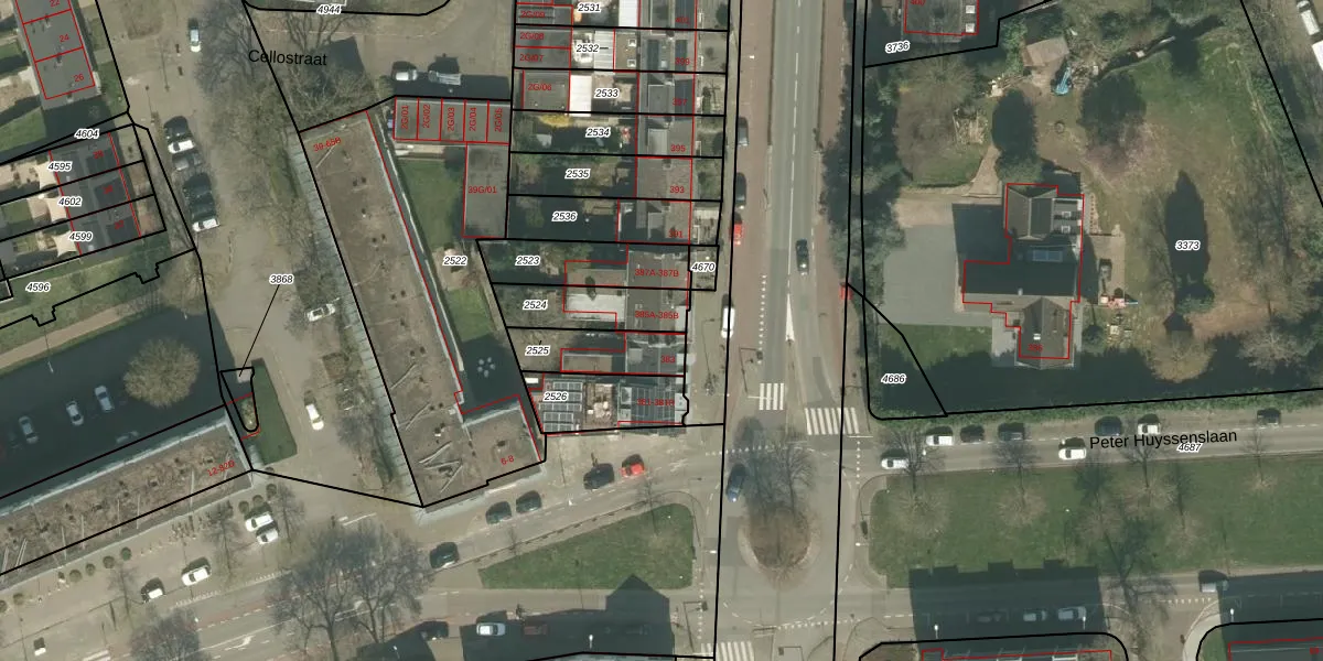 Brusselseweg 385-A is gelegen op kadastraal perceel MTT00L2524. Deze kadastrale aanduiding is uniek en wordt gebruikt door het Kadaster om eigendomsrechten en andere zakelijke rechten vast te leggen. Het perceel maakt onderdeel uit van de kadastrale gemeente Maastricht.