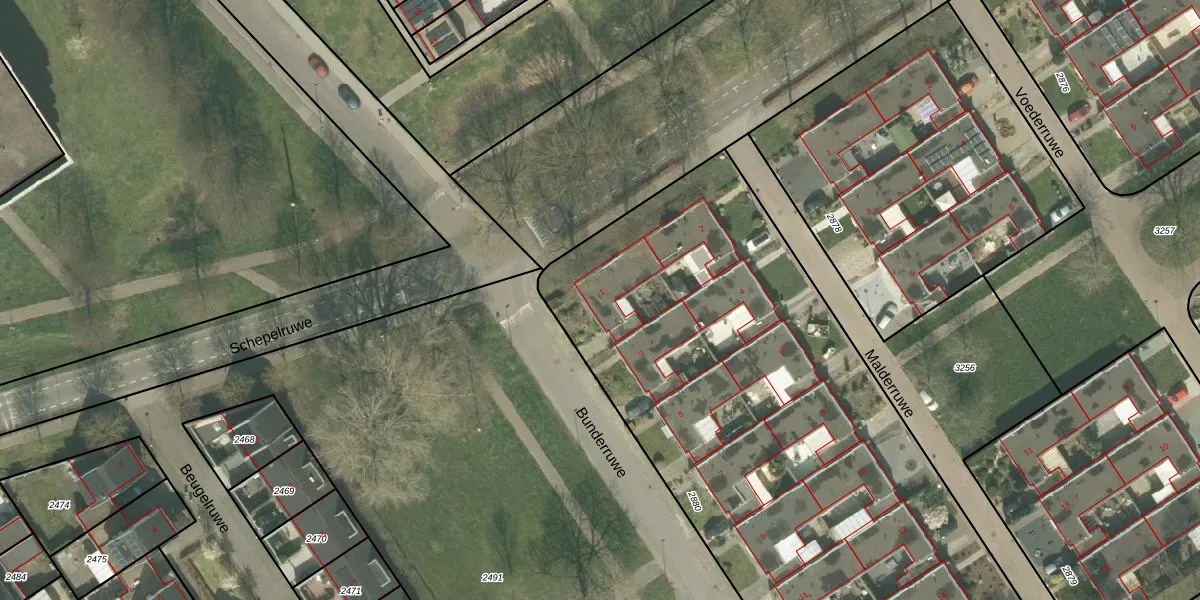 Het perceel waarop Bunderruwe 1 staat heeft een oppervlakte van 4092 m². Dit is een zeer groot perceel. De perceeloppervlakte wordt geregistreerd door het Kadaster. Gedetailleerde informatie over de maten van dit perceel kunt u vinden in het rapport Kadastrale kaart met maatvoering van Bunderruwe 1.