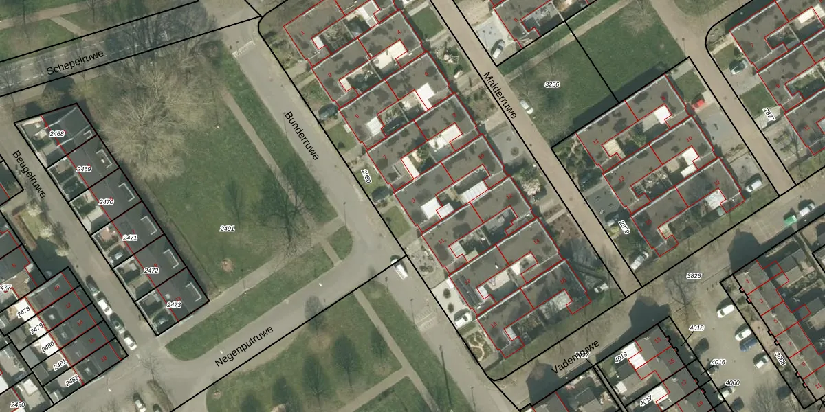 Het perceel waarop Bunderruwe 9 staat heeft een oppervlakte van 4092 m². Dit is een zeer groot perceel. De perceeloppervlakte wordt geregistreerd door het Kadaster. Gedetailleerde informatie over de maten van dit perceel kunt u vinden in het rapport Kadastrale kaart met maatvoering van Bunderruwe 9.