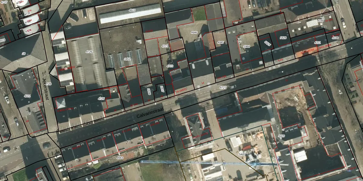 Het perceel waarop Calvariestraat 16 staat heeft een oppervlakte van 342 m². Dit is een groot perceel. De perceeloppervlakte wordt geregistreerd door het Kadaster. Gedetailleerde informatie over de maten van dit perceel kunt u vinden in het rapport Kadastrale kaart met maatvoering van Calvariestraat 16.
