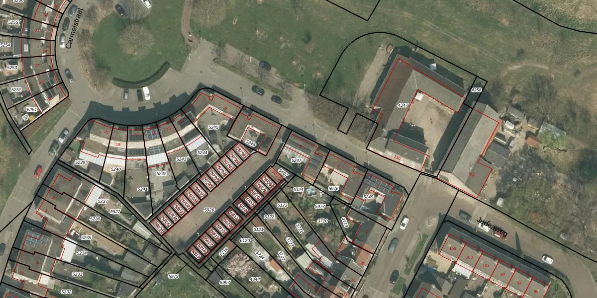 Carmelstraat 5 is gelegen op kadastraal perceel MTT00G5247. Deze kadastrale aanduiding is uniek en wordt gebruikt door het Kadaster om eigendomsrechten en andere zakelijke rechten vast te leggen. Het perceel maakt onderdeel uit van de kadastrale gemeente Maastricht.