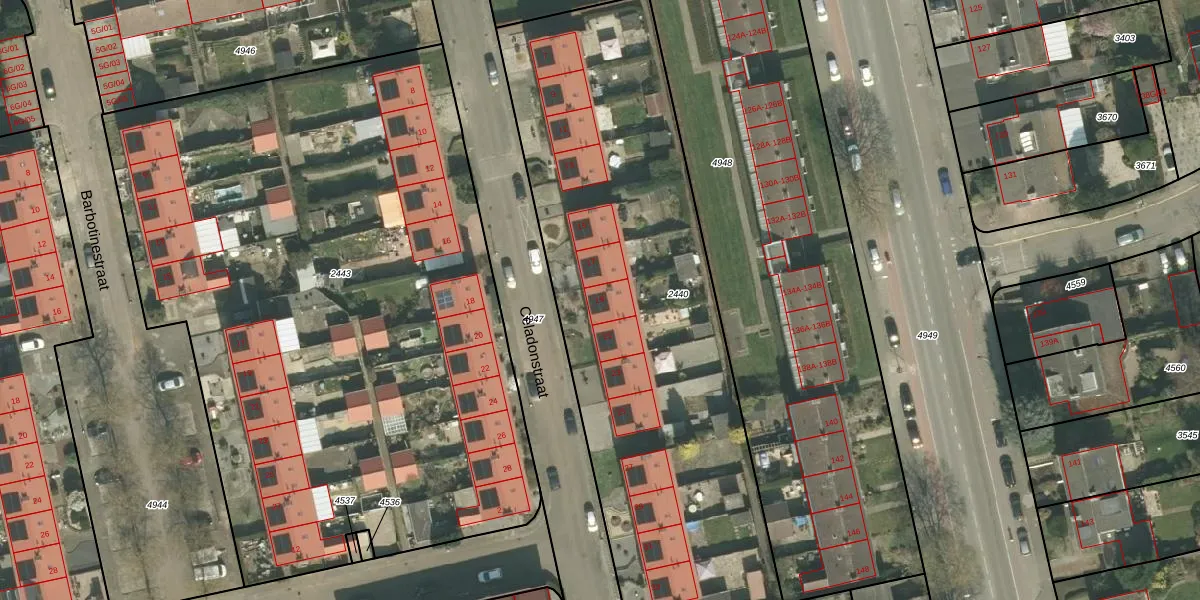 Het perceel waarop Celadonstraat 19 staat heeft een oppervlakte van 2700 m². Dit is een zeer groot perceel. De perceeloppervlakte wordt geregistreerd door het Kadaster. Gedetailleerde informatie over de maten van dit perceel kunt u vinden in het rapport Kadastrale kaart met maatvoering van Celadonstraat 19.