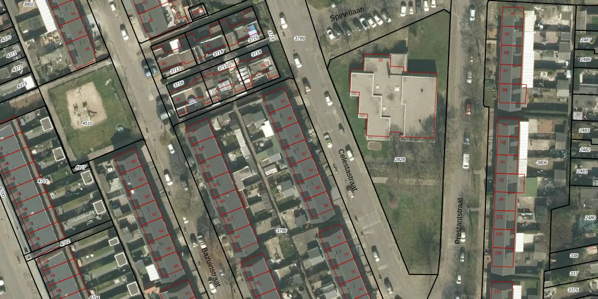 Het perceel waarop Celestastraat 62 staat heeft een oppervlakte van 4218 m². Dit is een zeer groot perceel. De perceeloppervlakte wordt geregistreerd door het Kadaster. Gedetailleerde informatie over de maten van dit perceel kunt u vinden in het rapport Kadastrale kaart met maatvoering van Celestastraat 62.