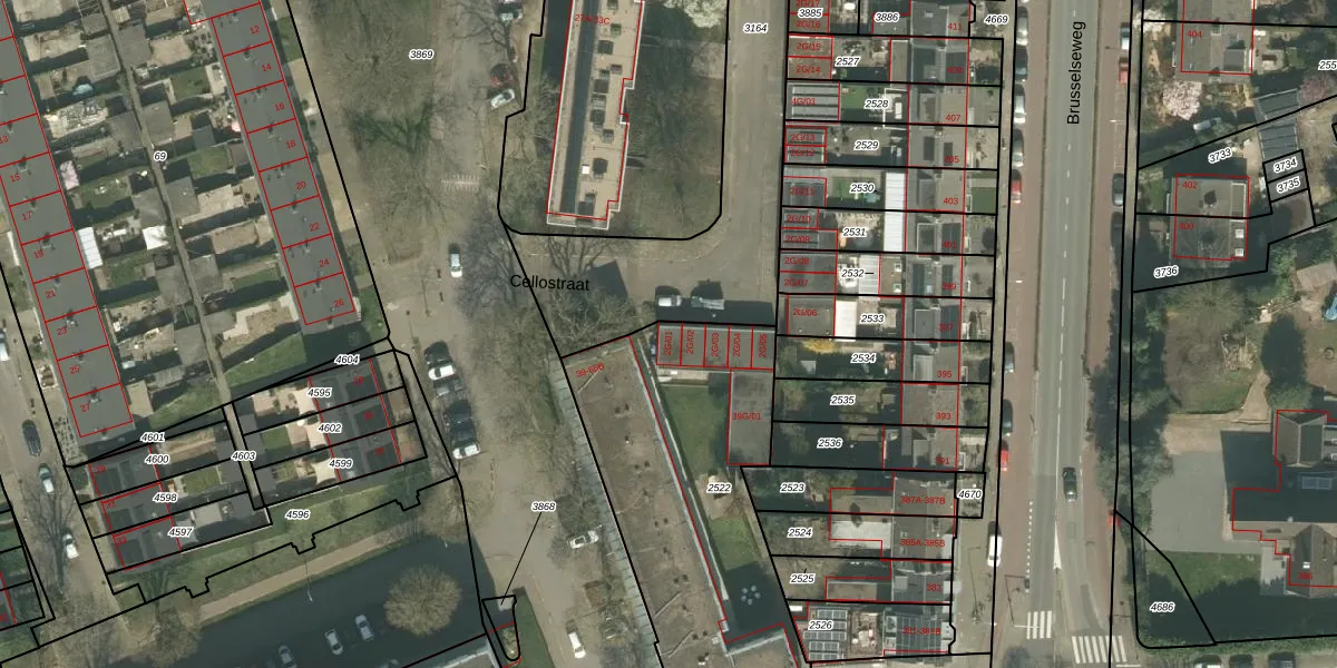 Cellostraat 2-G-01 is gelegen op kadastraal perceel MTT00L2522. Deze kadastrale aanduiding is uniek en wordt gebruikt door het Kadaster om eigendomsrechten en andere zakelijke rechten vast te leggen. Het perceel maakt onderdeel uit van de kadastrale gemeente Maastricht.