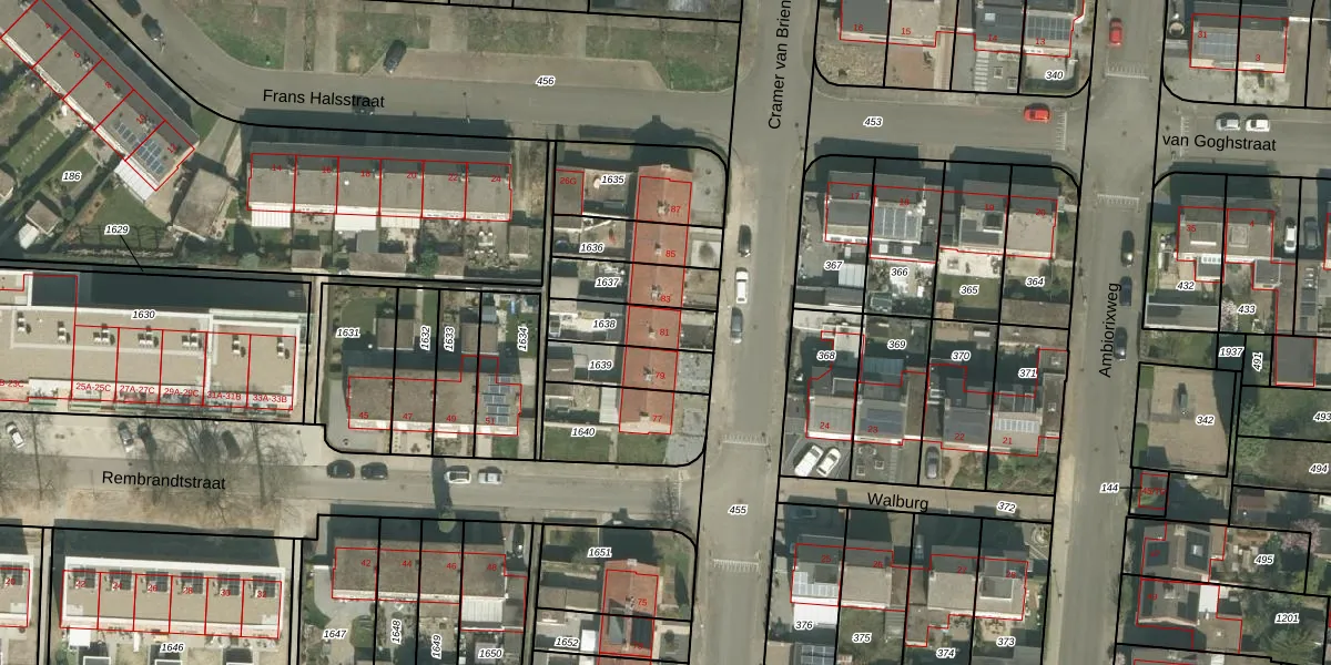 Het perceel waarop Cramer van Brienenstraat 81 staat heeft een oppervlakte van 158 m². Dit is een middelgroot perceel. De perceeloppervlakte wordt geregistreerd door het Kadaster. Gedetailleerde informatie over de maten van dit perceel kunt u vinden in het rapport Kadastrale kaart met maatvoering van Cramer van Brienenstraat 81.