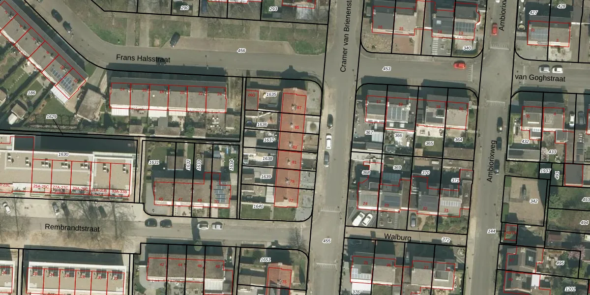 Cramer van Brienenstraat 83 is gelegen op kadastraal perceel MTT00R1637. Deze kadastrale aanduiding is uniek en wordt gebruikt door het Kadaster om eigendomsrechten en andere zakelijke rechten vast te leggen. Het perceel maakt onderdeel uit van de kadastrale gemeente Maastricht.