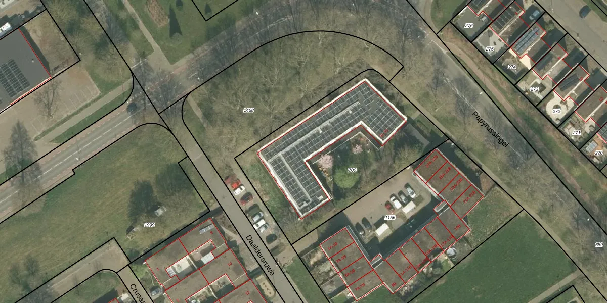 Daaldersruwe 33 is gelegen op kadastraal perceel MTT00N700. Deze kadastrale aanduiding is uniek en wordt gebruikt door het Kadaster om eigendomsrechten en andere zakelijke rechten vast te leggen. Het perceel maakt onderdeel uit van de kadastrale gemeente Maastricht.