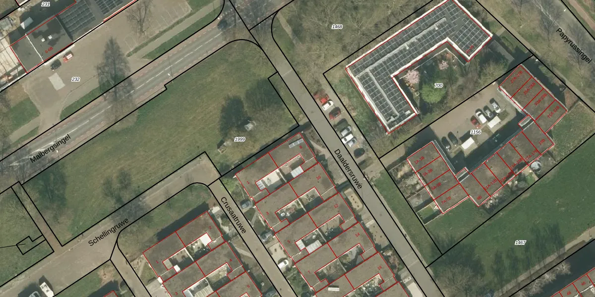 Het perceel waarop Daaldersruwe 8 staat heeft een oppervlakte van 3078 m². Dit is een zeer groot perceel. De perceeloppervlakte wordt geregistreerd door het Kadaster. Gedetailleerde informatie over de maten van dit perceel kunt u vinden in het rapport Kadastrale kaart met maatvoering van Daaldersruwe 8.