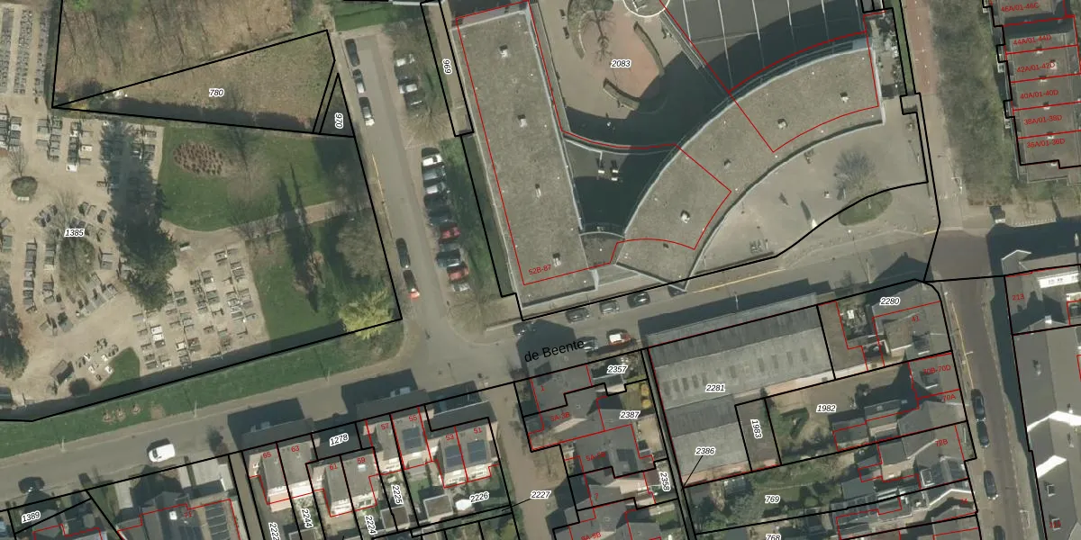 Het perceel waarop de Beente 62-C staat heeft een oppervlakte van 5675 m². Dit is een zeer groot perceel. De perceeloppervlakte wordt geregistreerd door het Kadaster. Gedetailleerde informatie over de maten van dit perceel kunt u vinden in het rapport Kadastrale kaart met maatvoering van de Beente 62-C.