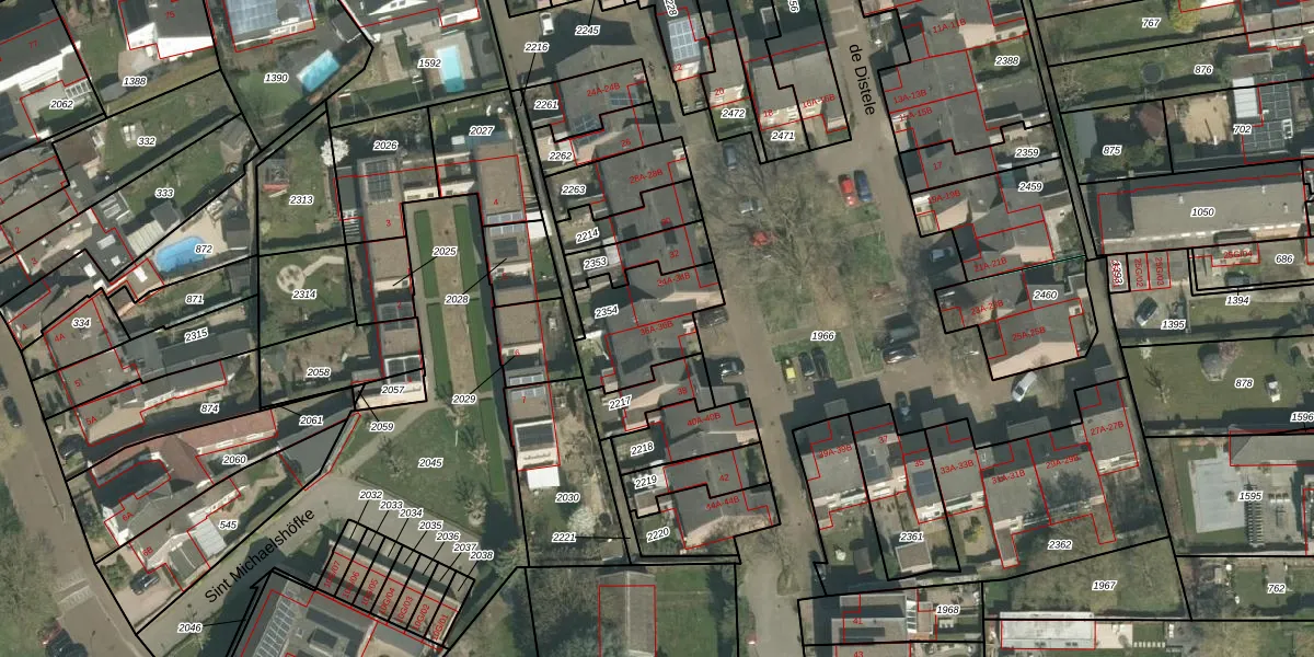 Het perceel waarop de Distele 36-B staat heeft een oppervlakte van 304 m². Dit is een groot perceel. De perceeloppervlakte wordt geregistreerd door het Kadaster. Gedetailleerde informatie over de maten van dit perceel kunt u vinden in het rapport Kadastrale kaart met maatvoering van de Distele 36-B.